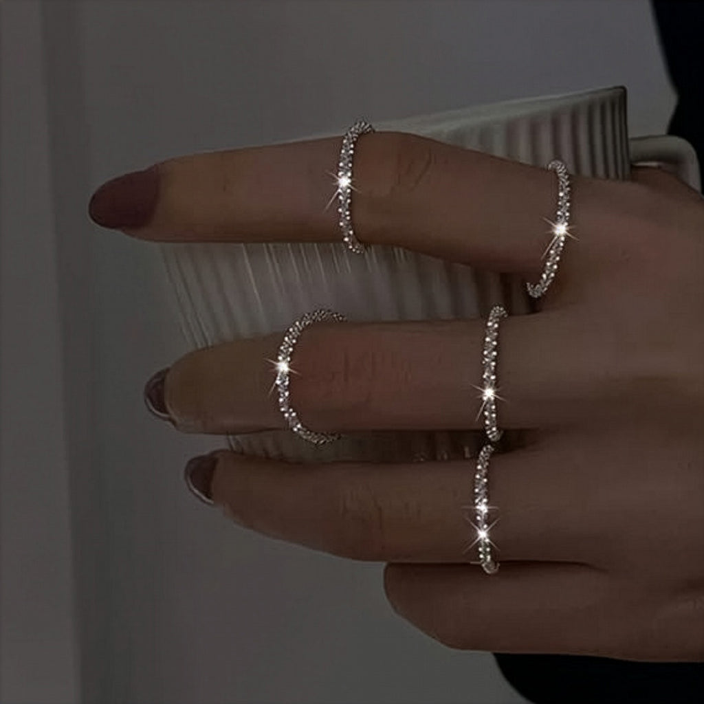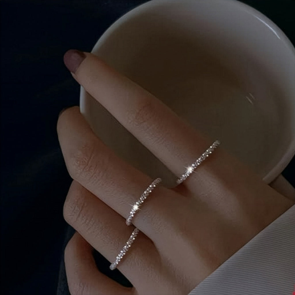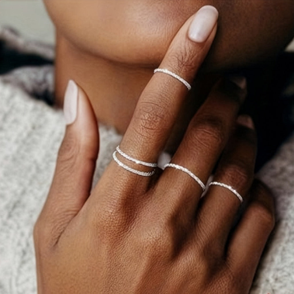 Este delicado anillo de plata 925 destaca por su diseño moderno y etéreo, compuesto por finas bandas que se cruzan suavemente alrededor del dedo, creando un efecto de brillo continuo y elegante. Su estilo minimalista lo convierte en una pieza versátil, perfecta para usar sola o combinar con otros anillos.