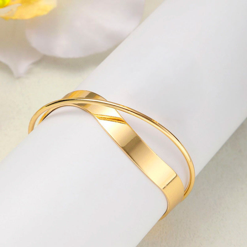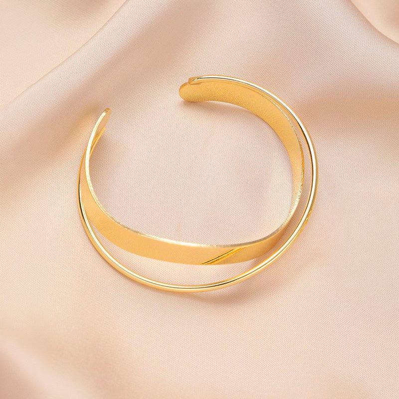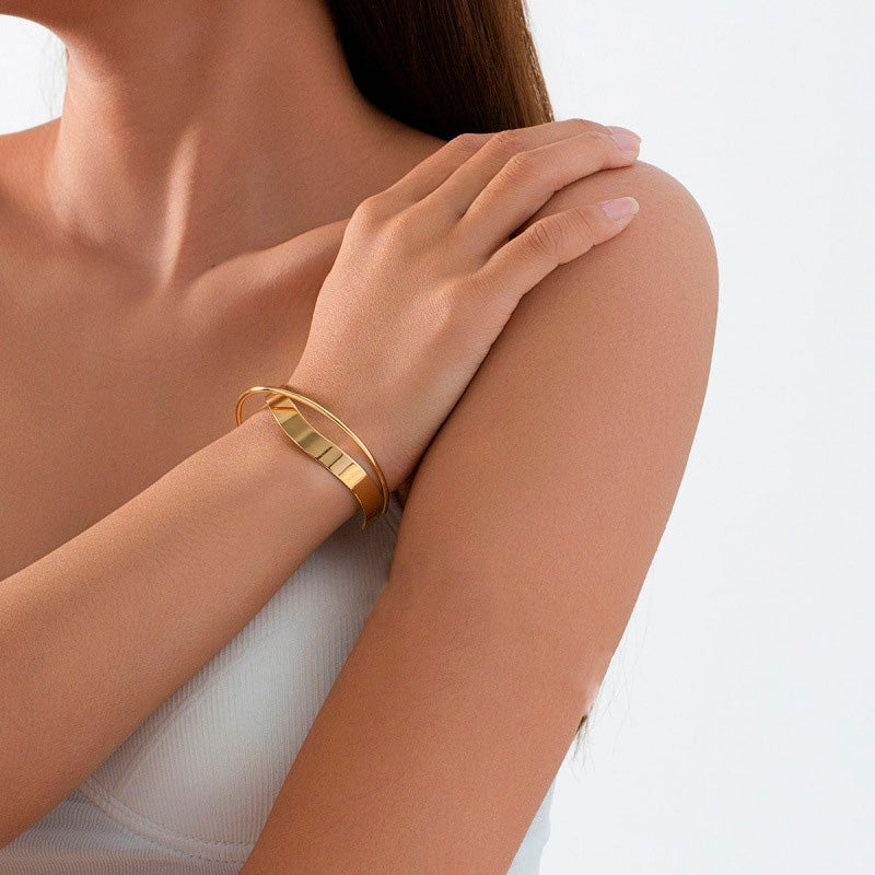 Su acabado dorado refleja la luz con elegancia, creando un brillo cálido que resalta con cualquier estilo, desde un look cotidiano hasta una ocasión especial. Es una pieza ligera y cómoda que se adapta fácilmente a la muñeca, aportando un toque de sofisticación serena.