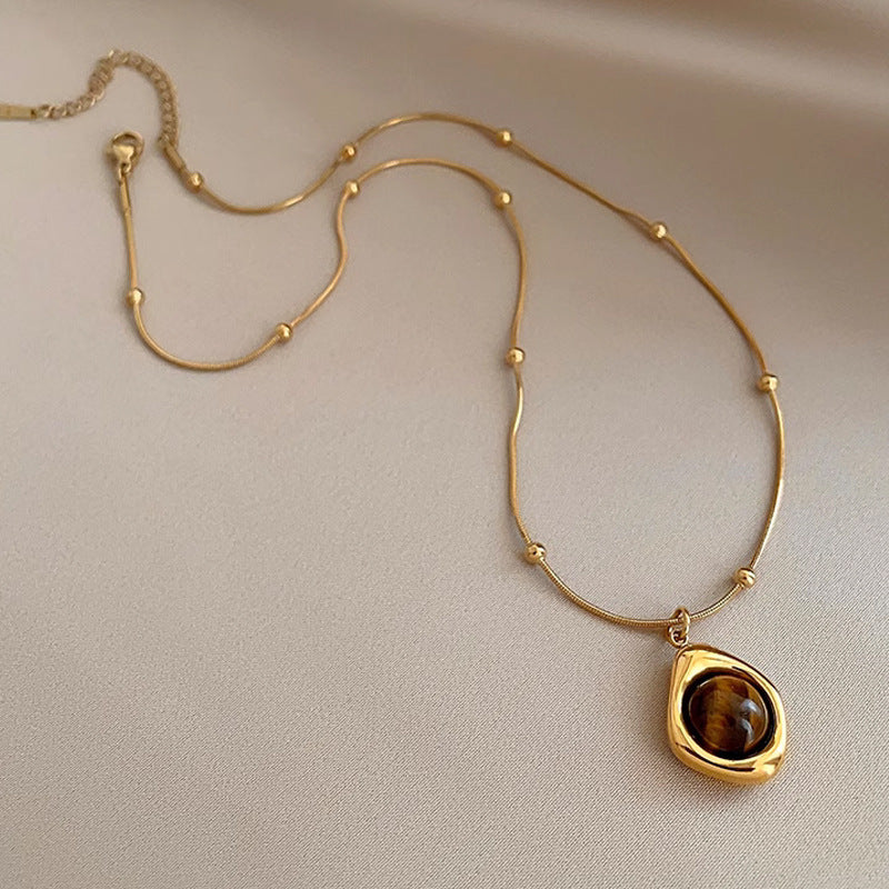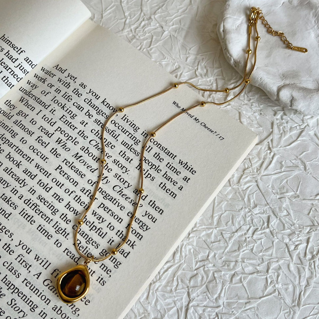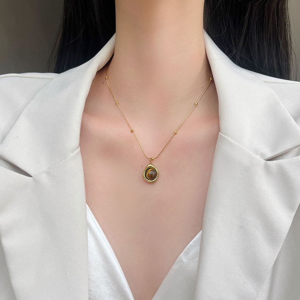 Despierta tu fuerza interior con el encanto cálido y protector del Collar Dorada Intuición. Esta pieza delicada y elegante combina una cadena dorada de acero inoxidable con pequeñas esferas que realzan su movimiento y luminosidad. En el centro, una piedra de Ojo de Tigre –conocida por su conexión con la intuición, la claridad mental y la protección energética– se convierte en el foco de esta joya poderosa y femenina.