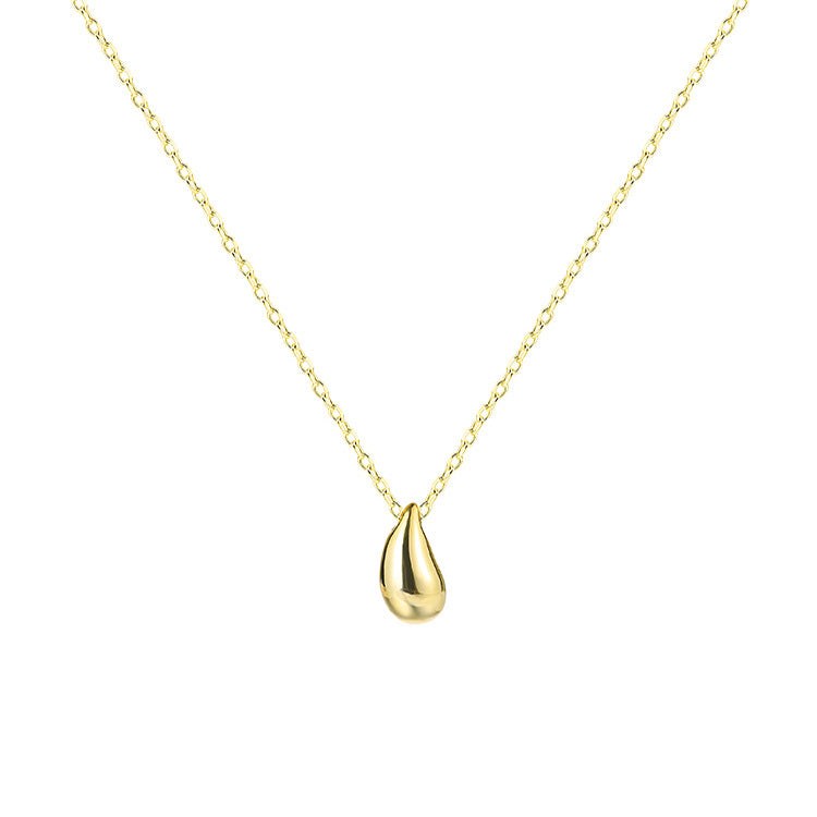 Collar delicado de cadena dorada con colgante pequeño en forma de gota pulida. Su diseño minimalista y ligero lo convierte en un accesorio versátil para el día a día, aportando un toque sutil de elegancia que combina con cualquier estilo.