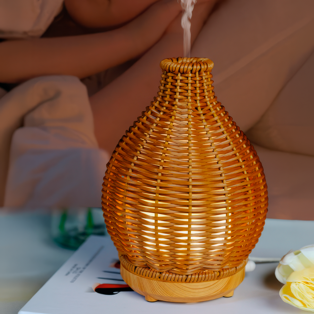 El Difusor Bruma de Mimbre combina aromaterapia y luz cálida para crear un ambiente de calma y bienestar en tu hogar. Su diseño inspirado en fibras naturales transmite una sensación acogedora y armoniosa, ideal para espacios de descanso, meditación o relajación.