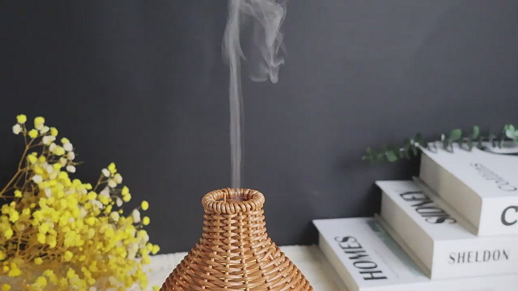 Al encenderlo, libera una suave bruma que permite disfrutar de tus aceites esenciales favoritos, mientras su luz cálida crea una atmósfera tranquila y agradable. Su estilo artesanal se integra fácilmente en decoraciones naturales, minimalistas o estilo zen.