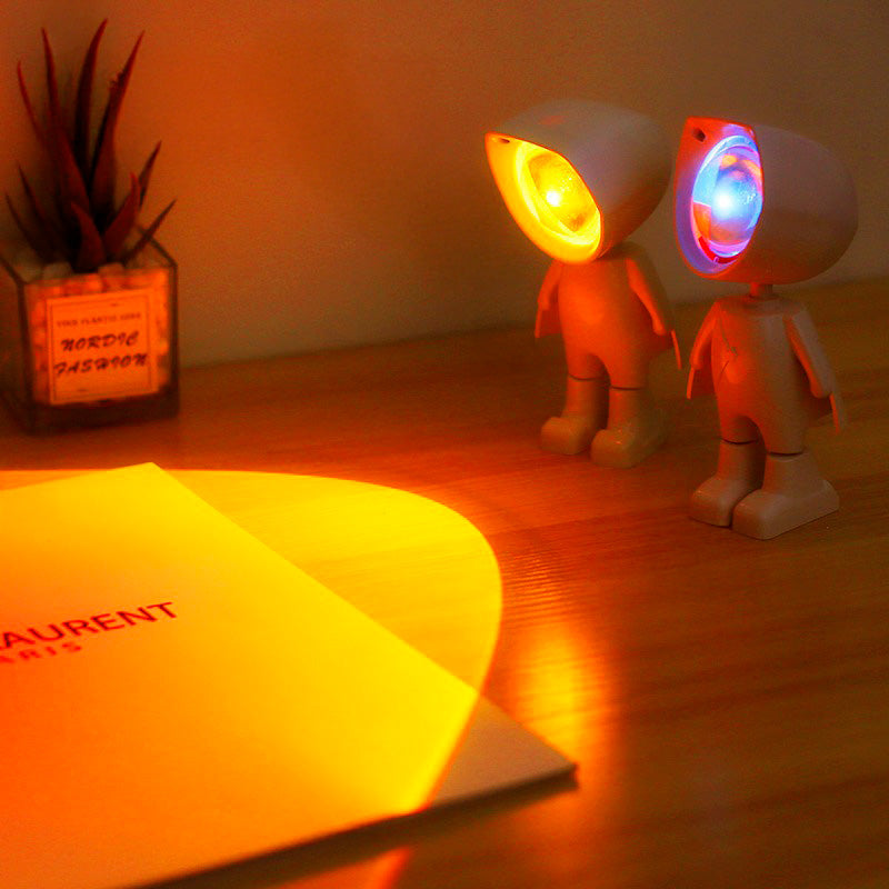 Esta lámpara de proyección con forma de pequeño personaje crea un efecto de luz ambiental cálida y envolvente. Su diseño proyecta un halo de color que transforma cualquier rincón en un espacio acogedor, ideal para decorar habitaciones, acompañar momentos de lectura o dar un toque especial en la noche. Compacta y fácil de colocar, combina funcionalidad con un estilo original y moderno.