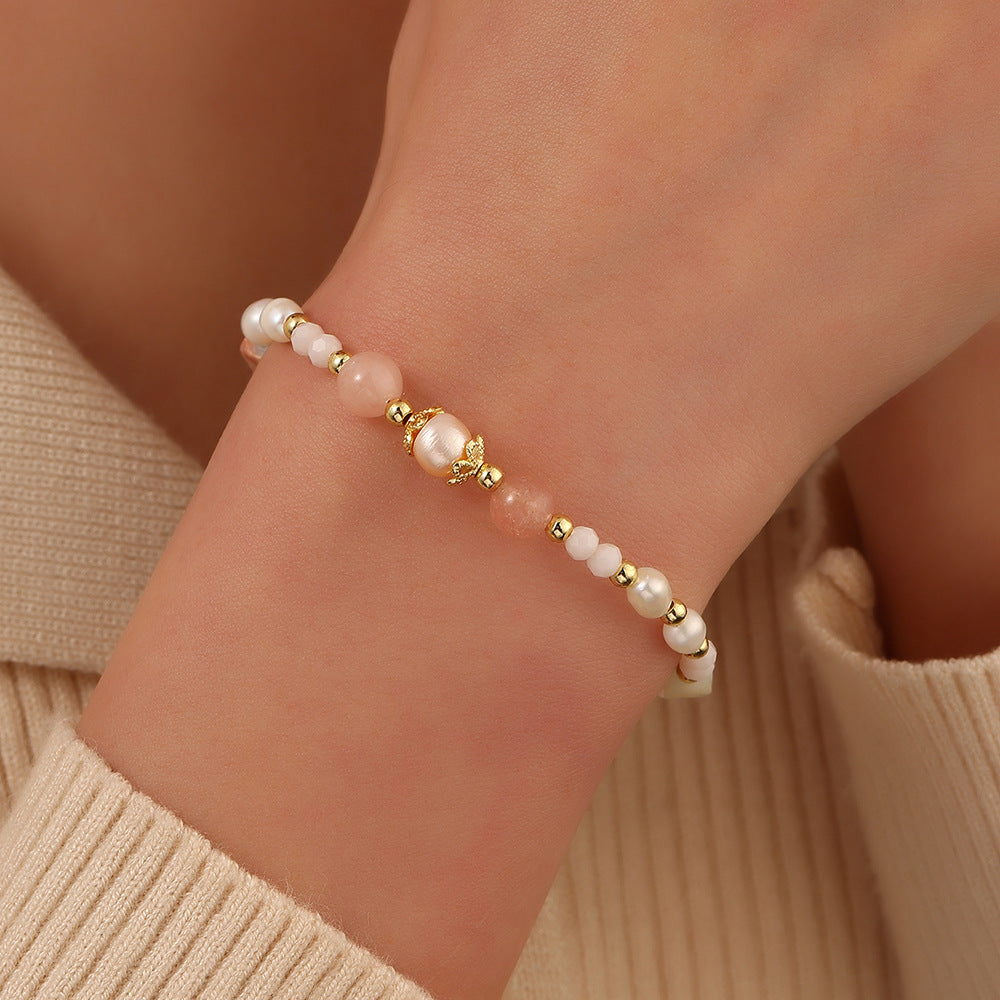 Un diseño delicado y encantador que combina ternura y elegancia. Esta pulsera está formada por perlas finamente dispuestas con pequeñas cuentas doradas, y al centro un distintivo dije en forma de gatito que aporta un toque juguetón y único. Ideal para quienes buscan un accesorio sofisticado con un aire dulce y original, perfecto tanto para el día a día como para ocasiones especiales.